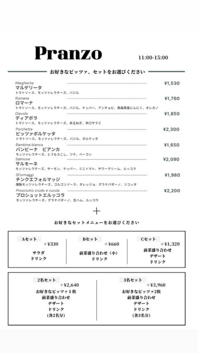 | Aセット | PIZZA+¥330 |