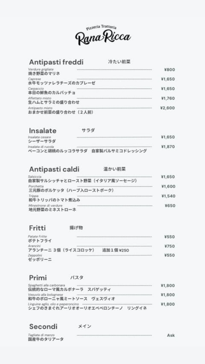 Rana Riccaは、肩の力を抜いて楽しめる本格イタリアンレストランです。